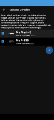 The app will work with other vehicles supported by FordPass Connect, but will not display the correct vehicle. If you want full support for a vehicle not listed, visit the project's GitHub page (https://github.com/khpylon/MachEWidget) for instructions.
