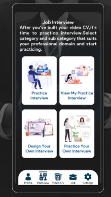 We at My Mock Interview, have designed this app as an interactive interview preparation tool to help you rehearse your interview answers, where our animated characters will conduct a mock interview for categories you choose for. Your answers will be recorded so you can playback, observe and rectify any mistakes and re-record your answers and share with employers and mentors.