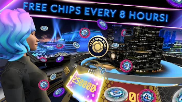 for free every 8 hours for more chips and the chance to win the 250,000 chips jackpot. Plus, earn free Creds to unlock exclusive items.
